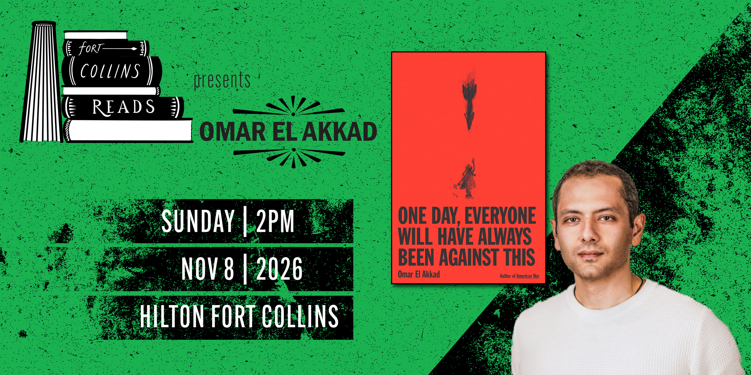 We are thrilled to bring author Omar El Akkad to Fort Collins to discuss his nonfiction debut One Day, Everyone Will Have Always Been Against This. His memoir dives into what it’s like to live in a Western world that doesn't always live up to its promises. The event is on November 8th, at 2pm at the Hilton Fort Collins. Doors open at 1pm. Come early for the basket raffle! The author talk will be followed by a book signing.